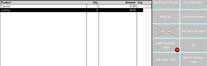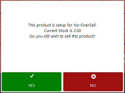 - After a Product's Oversell Quantity has been exhausted, a Red Cross will display to alert the Operator that the current Stock is zero