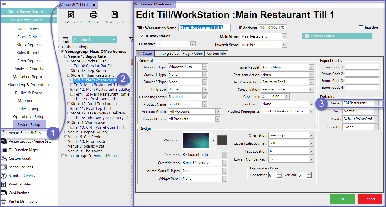 - To find the Default KeySet Setting for a Workstation, follow these steps after logging in to BackOffice: