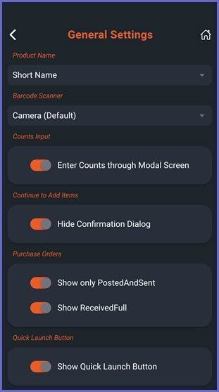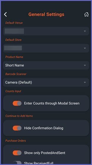 • Hide Confirmation Dialog: If turned on, it will hide the Confirmation Dialog prompting the Operator if they want to continue to add items, instead it will redirect the Operator to the Product Search Page after the Count has been entered