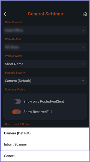 • Note: If default Venue and Store are set, while performing any stock function, the app will pre-populate the Venue and Store fields which otherwise can also be changed within the Stock Functions