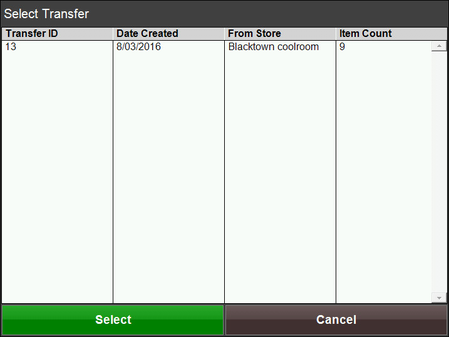 - If a Transfer has been saved, a window will appear prompting to Select a Transfer
