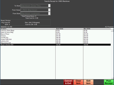- Before Posting the Transfer, Products can be cleared or edited if needed
