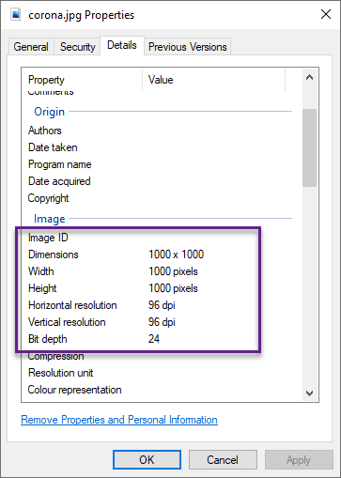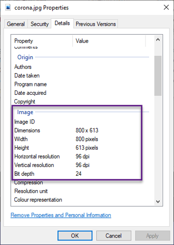 In the example above the aspect ratio can be seen by right-clicking the image file and selecting the Details Tab
