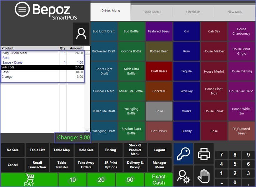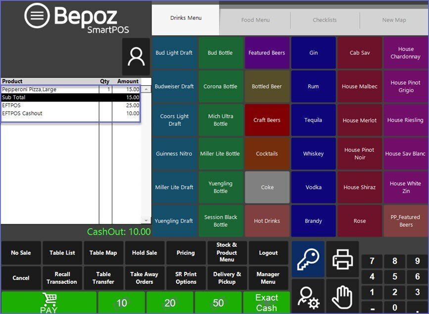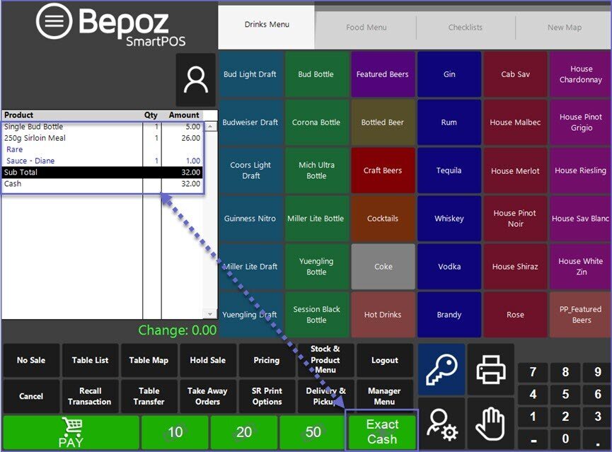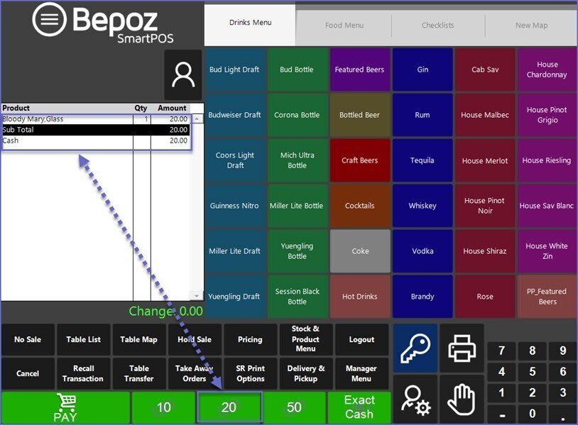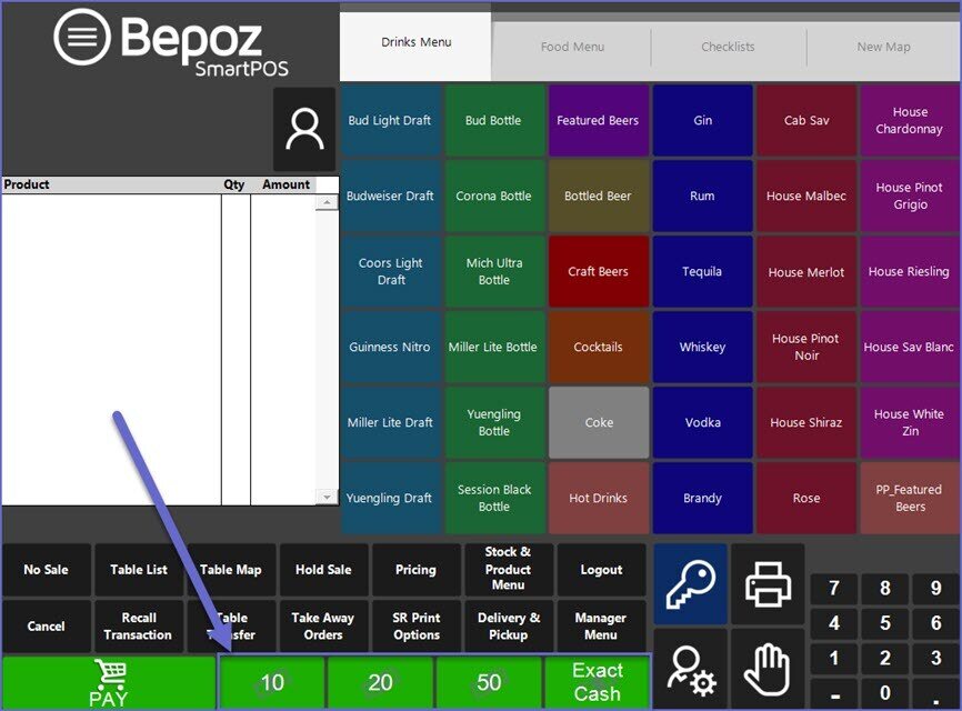 • The Cash Button may have another Name as designated by your Bepoz Administrator