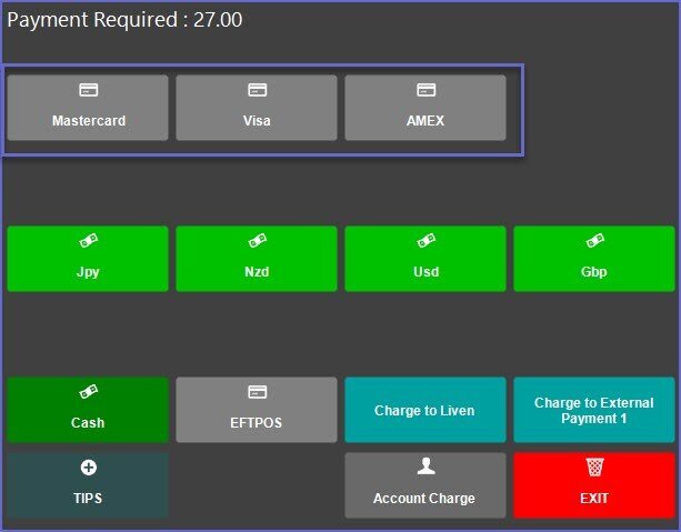 • An Operator can use an available Credit Card button within the Payment Window when a customer is paying using a supported Credit Card Type