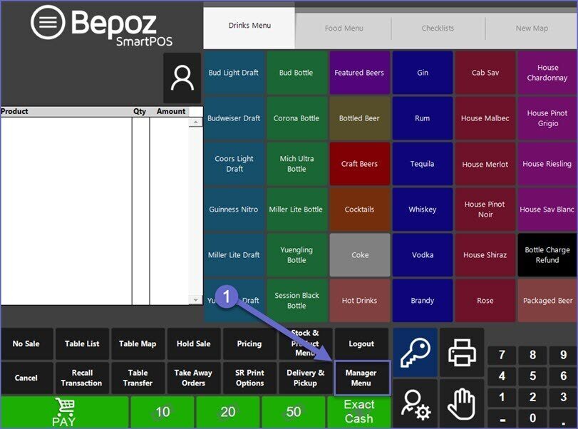 - This will change the Function Panel to display the Manager Menu Function Panel and the associated buttons