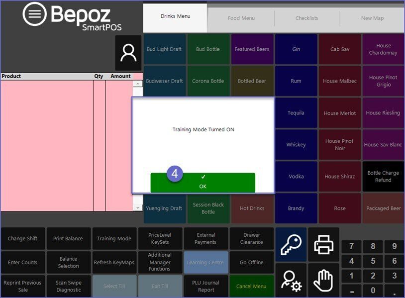 - After logging on to a SmartPOS Workstation, complete the following steps to Enter into Training Mode