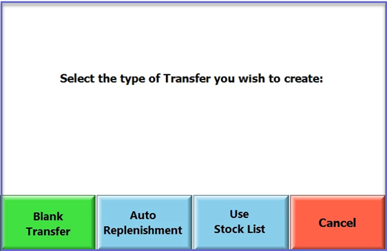 - When the ‘Transfer List Only’ flag is ON, only two options are displayed to the Operator for Stock Transfer: