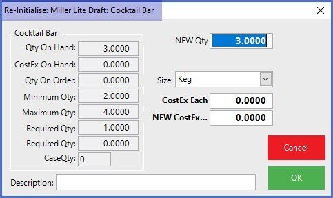 The stock Re-Initialise function is designed to overwrite both the Quantity on Hand and Cost on Hand for any Product selected for Re-Initialisation.
