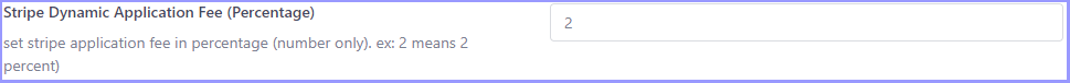 Stripe Dynamic Application Fee (Percentage): When Stripe Application Fee Option is set to Dynamic, this field will be displayed. Input a numerical value to apply the application fee by percentage