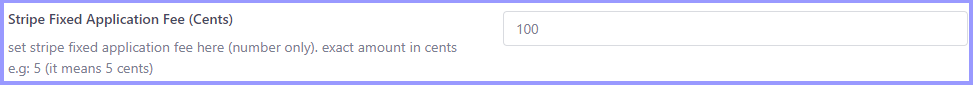 Stripe Fixed Application Fee (Cents): When Stripe Application Fee Option is set to Fixed, this field will be displayed. Input a numerical value to apply the application fee by cents