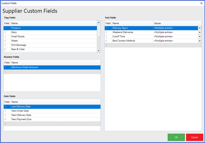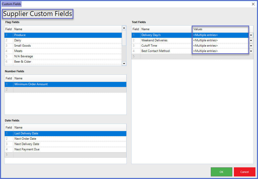 - For this Supplier Custom Fields example, there is data that has been input in the relevant fields