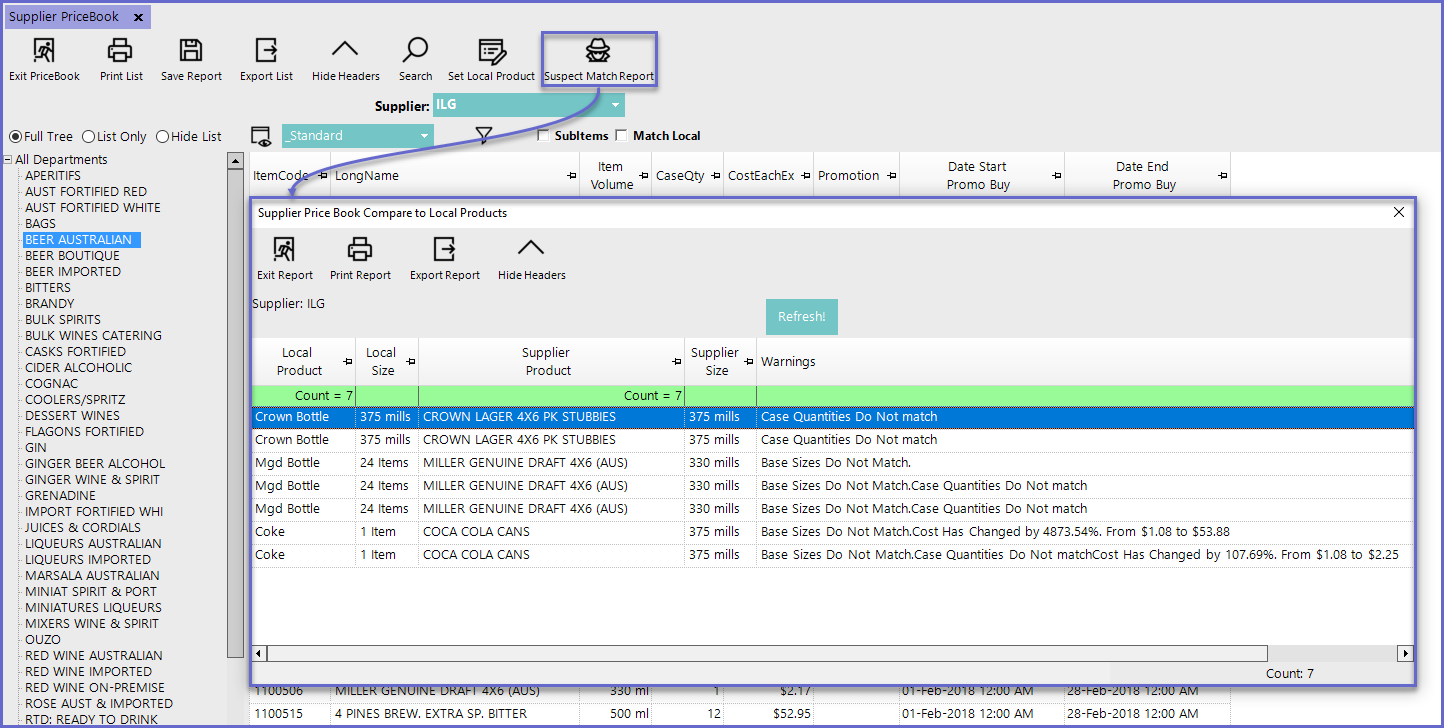 - The Suspect Match Report is a feature that can be accessed in the Supplier Price Book