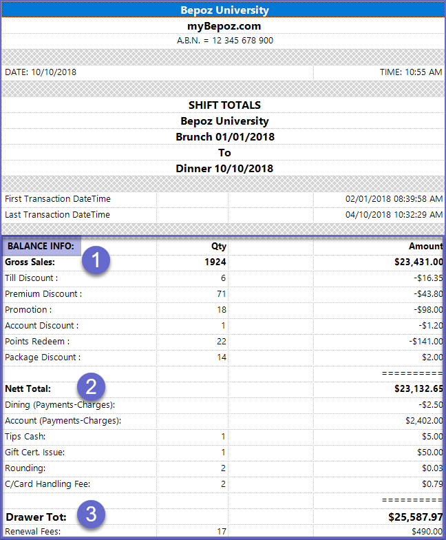 - Till Balance Header section as the name suggests appears at the very top of the Till Balance Report