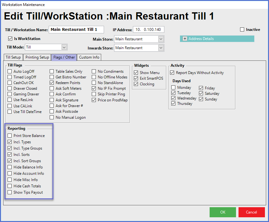 - Click on the Flags / Other Tab and tick the flags On / Off from the Reporting section