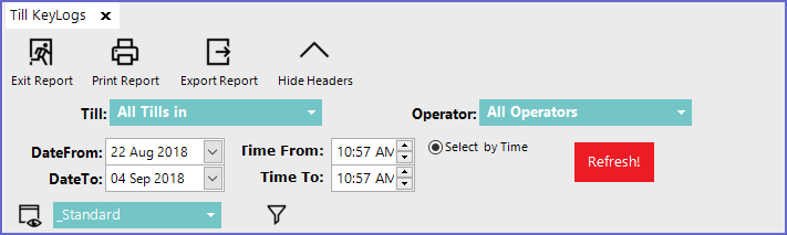 - The display period in the Till Keylogs can only be set in the form of Time period; i.e., by setting a To and From Date and Time