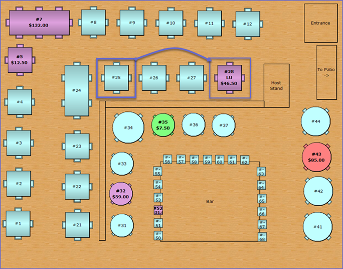 - In this example the Venue has two table groups; e.g., Dining and Bar and a table from Dining is being transferred to a table from Bar