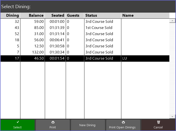- In this example, table number 17 is chosen after which the Table is saved and it can be viewed on Table List