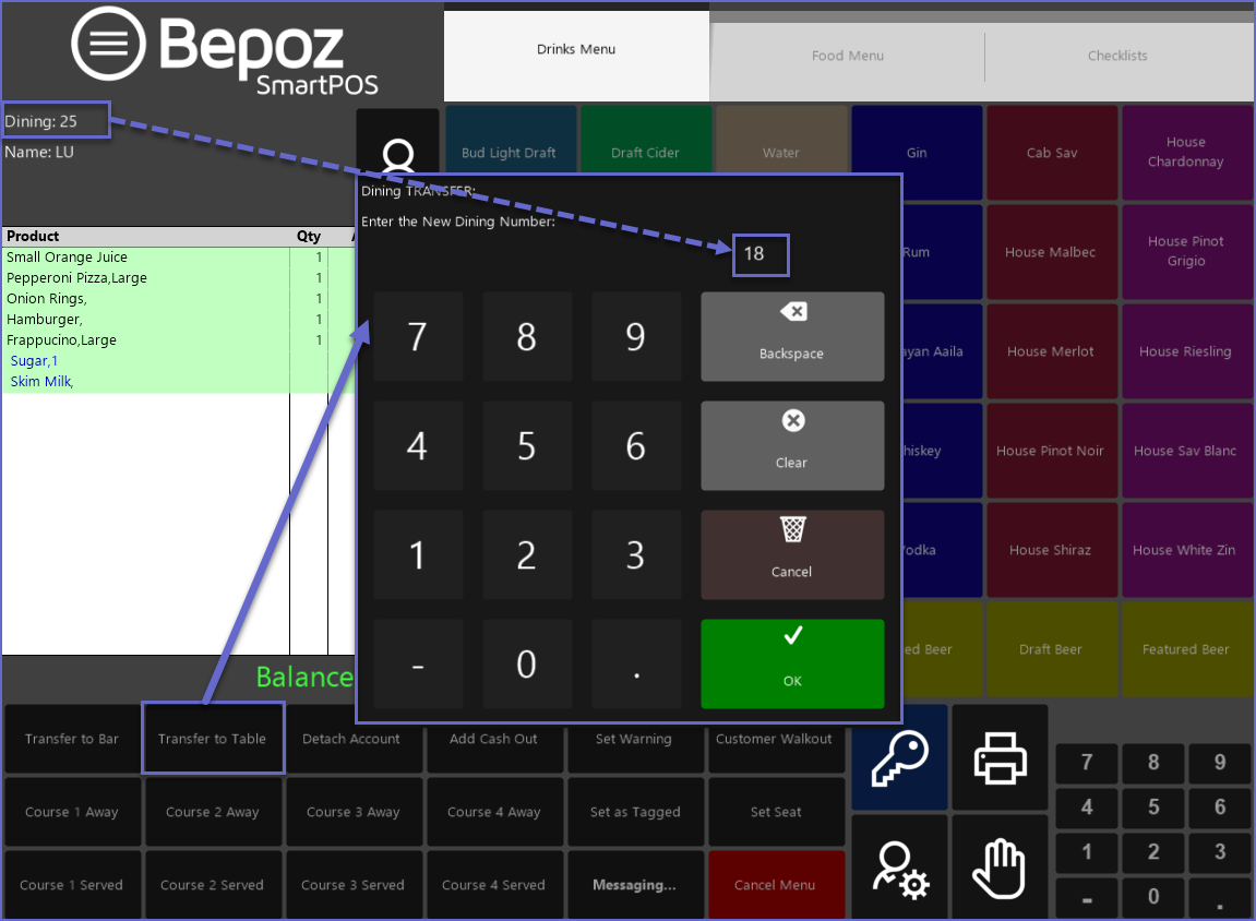 - Bepoz allows for transferring a Transaction from one Table to another in the system so that it doesn't confuse Operators while processing Payments or adding Products to a Transaction