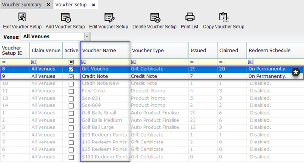 - This allows for seeing data relating to individual Vouchers issued for the selected Voucher Name