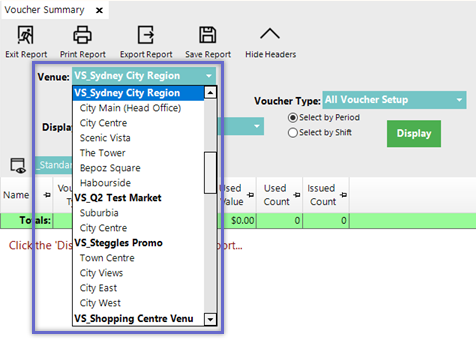 The Voucher Type drop-down allows for selecting an active Voucher Name from the System's Voucher Setup list Any disabled Voucher Setups will not be available for selection from the Voucher Type drop-down in this Report Alternatively, select 'All Voucher Setup' to report on all Voucher Names - both active and inactive |