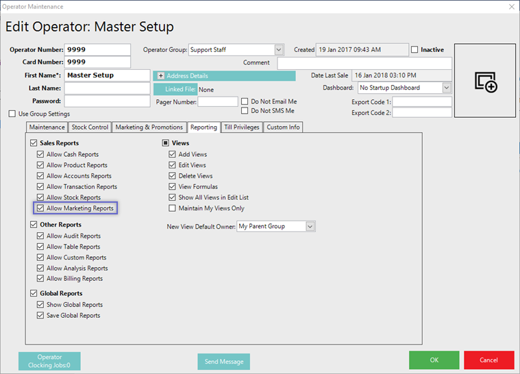 - For an Operator to have access to Marketing Reports, including the Voucher Summary, they must have the Allow Marketing Reports flag enabled
