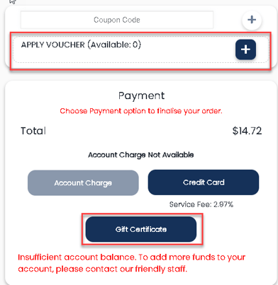 At the Checkout screen, the Apply Voucher section and Gift Certificate options should now be available.