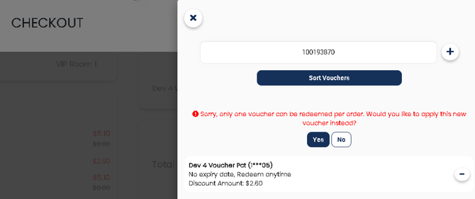 If there are multiple vouchers available, the system can only redeem one voucher so the customer must choose which voucher to redeem.