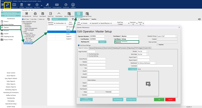 Once you have logged into BackOffice, and if you have the appropriate Operator privileges, you can change your Operator Password.