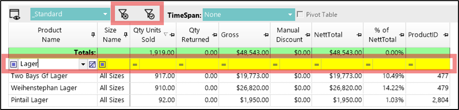 Example, with the Filter On, you can filter for Lagers only and see just those results in the report.