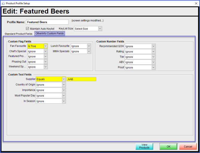 - Selecting Ignore for any of the Fields will not take that Product Information/Setting into account at all for the Product Profile