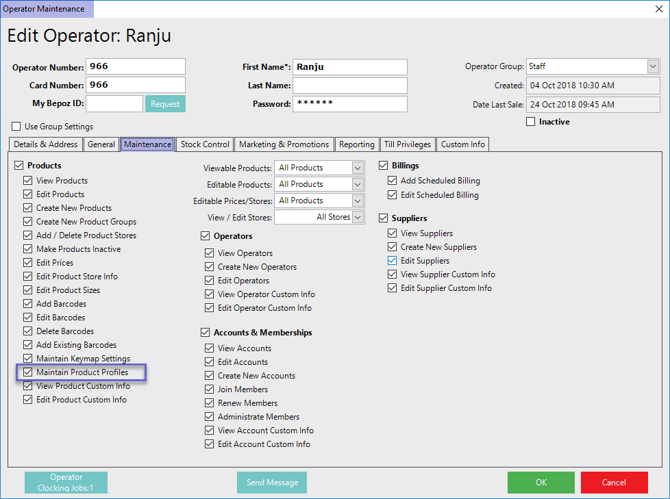- In order to access and maintain Product Profiles, an Operator must have the Maintain Product Profiles privilege flag enabled within Operator Maintenance