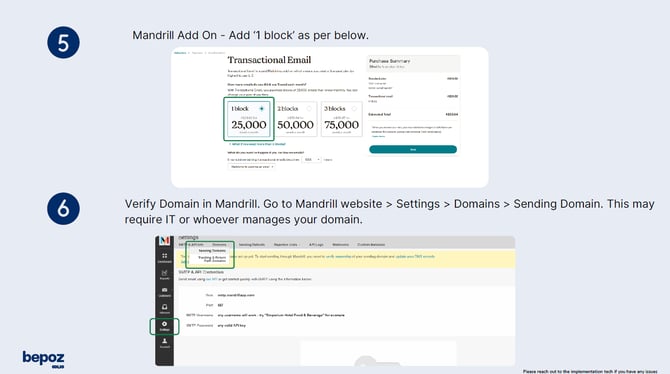 Mailchimp manages the templates used by MyPlace, while Mandrill handles the transactional email delivery. Domain verification may require assistance from IT or the team responsible for your domain.