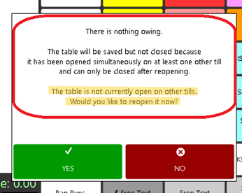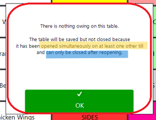 “There is nothing owing. This table has been opened on other tills. Please reopen the table to send all orders to the kitchen.”
