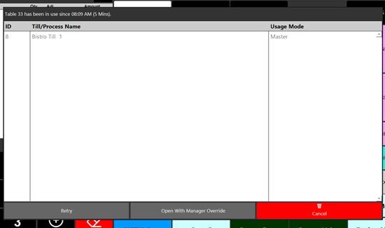 These tills can add items to the table but cannot take payments. - Opening an Already Open Table