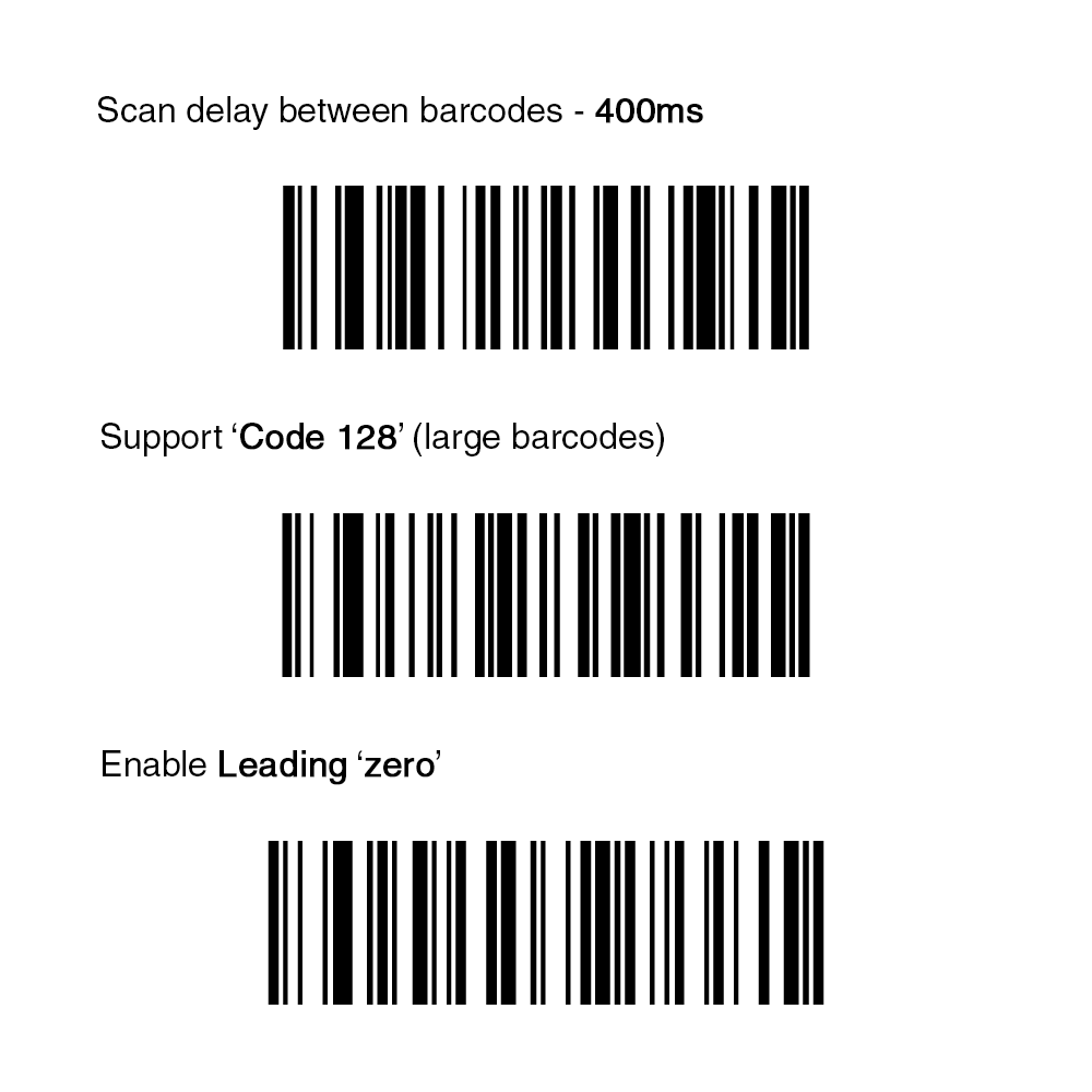 Lastly, you will need to program the scanner and disable converting UPC-A format barcodes into EAN-13 format, this is the extra, unwanted leading zero: