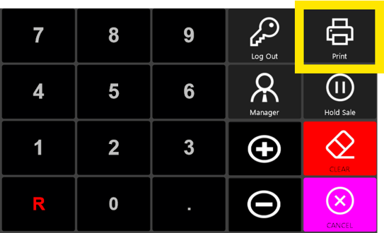Note: This method can only be used to print the LAST completed Sale, if anything else use method 2 below.