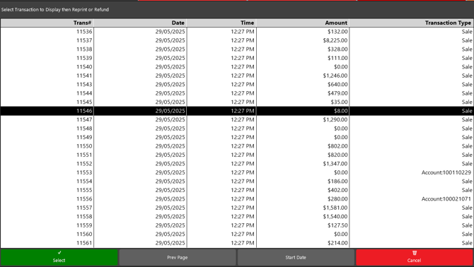 Select Transaction List (Maybe called Reprint Previous sale) - Names could be different but the function is always Transaction List