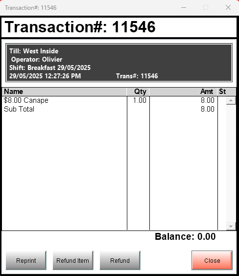 The Receipt should now print to the Till's Receipt printer (Channel)
